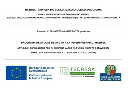 El proyecto REFRACTA – INVESTIGACION EN REFRACTARIOS CONFORMADOS MEDIANTE PROCESOS DE FABRICACION HÍBRIDA QUE GARANTIZAN LA CALIDAD SUPERFICIAL DE LAS PIEZAS Y LA ROBUSTEZ DEL PROCESO está financiado por el Gobierno vasco y la Unión Europea.